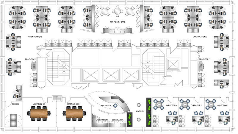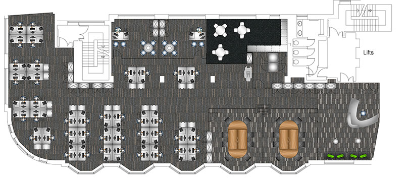 Space planning, London Cafe area, Cambridge Science Park Toilet refurbishment, Cambridge Science Park Indicative schematic, London